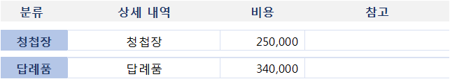 제가 결혼하면서 지출했었던