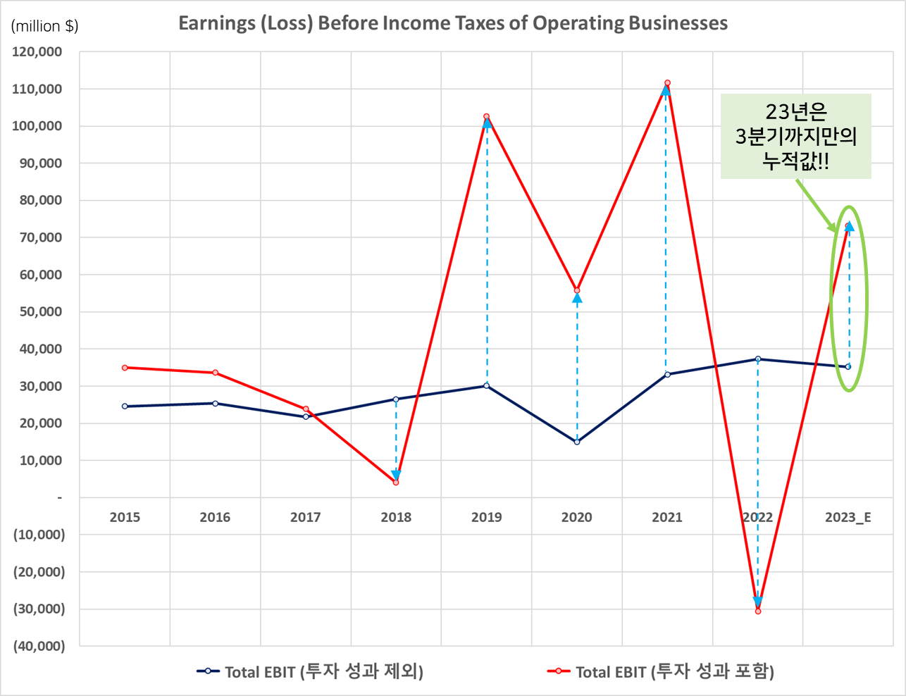 빨간색이 투자 성과를 포함한
