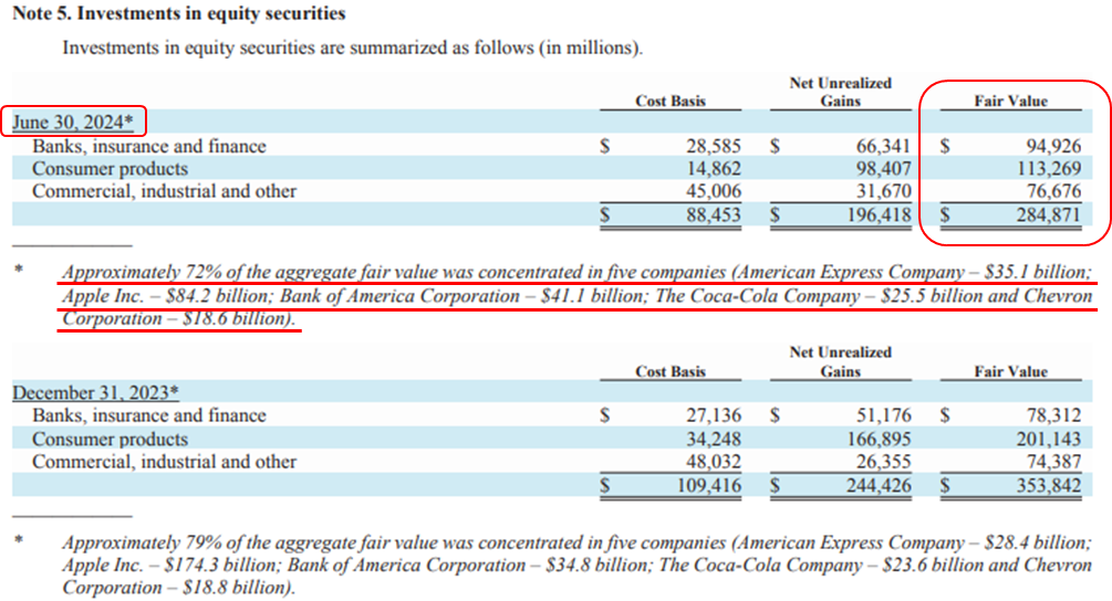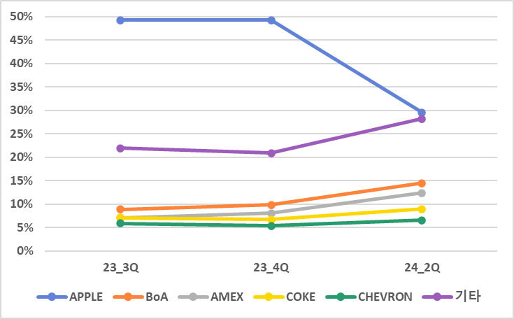 출처 : 버크셔 해서웨이 24년 2분기 보고서 위 그림에서 위쪽 표는 24년 2Q 기준이고