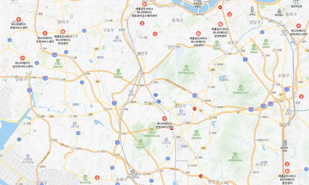 가까운 <위니아에이드 서비스센터>로