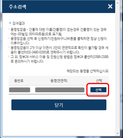 이 중에 조회하고자 하는 집의 호수를 선택 눌러주세요.