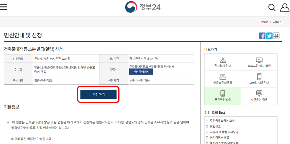 건축물대장은 정부24 사이트에서 조회 가능합니다.