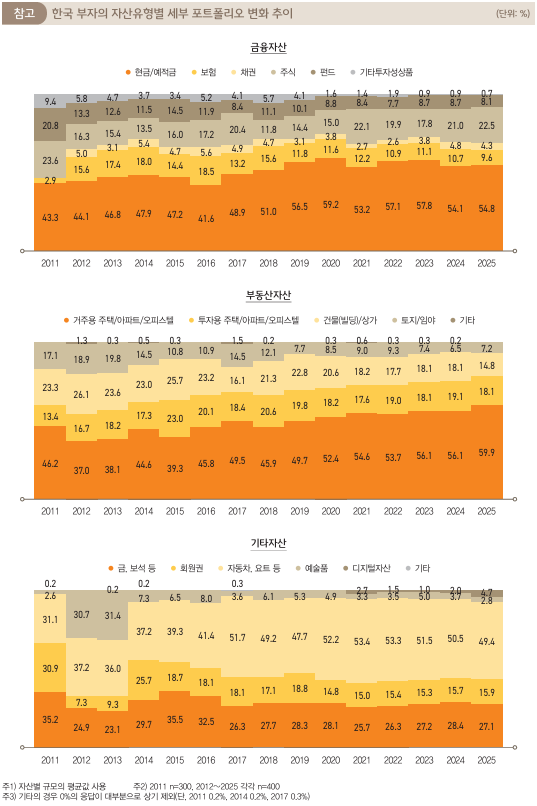 특히 최근 조사 결과에서는 단일 자산이나 단일 소득원에 대한 의존도가 낮아지는 경향이 확인됩니다.