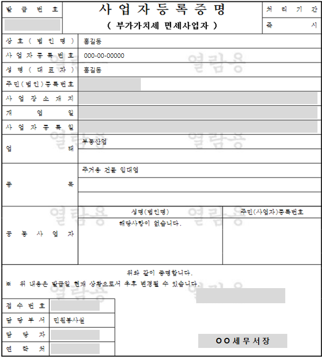 2번은 세무서장이 발급해줍니다.