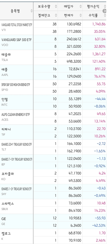 저의 미국 주식 포트폴리오
