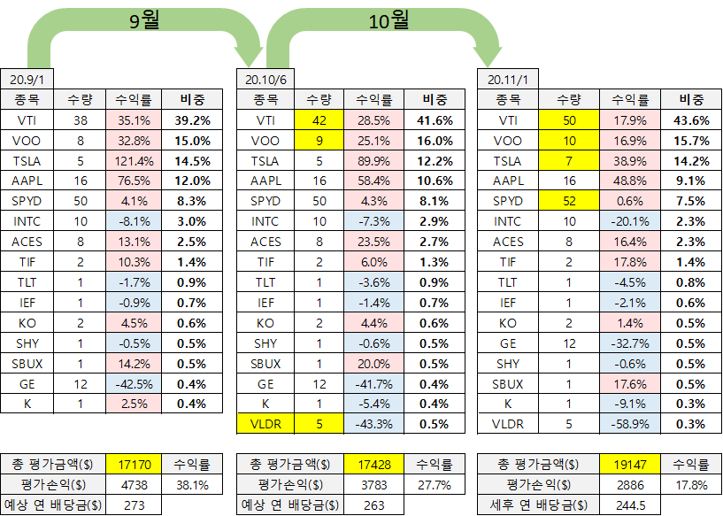 앞서 말씀드린 이유를 바탕으로10월에는 VTI와 VOO를