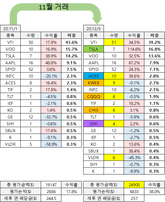 20년 12월 5일 미국주식 포트폴리오 (feat. KWEB, CQQQ, CHIS, OHI)▶파공과 함께하는 투자 공부/▷주식 포트폴리오 공개 2020. 12. 6. 11:05