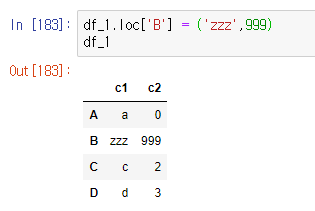 df_1.loc['B'] = ('zzz',999)df_1cs <실행 화면>