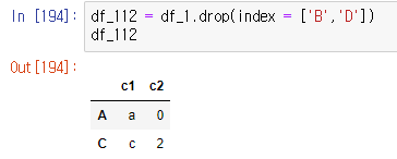 df_112 = df_1.drop(index = ['B','D'])df_112cs <실행 화면>