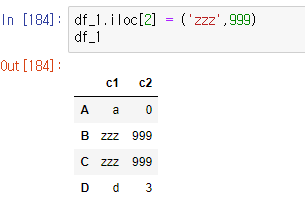 df_1.iloc[2] = ('zzz',999)df_1cs <실행 화면>