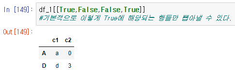 df_1[[True,False,False,True]]cs <실행 화면>