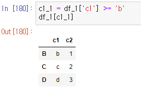 c1_1 = df_1['c1'] >= 'b'df_1[c1_1]cs <실행 화면>