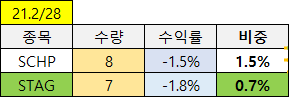 미국주식 포트폴리오 _ 21년 2월 28일 (feat. SCHP, SPYD, STAG, OHI, CQQQ, KWEB, CHIS)▶파공과 함께하는 투자 공부/▷주식 포트폴리오 공개 2021. 3. 3. 23:57