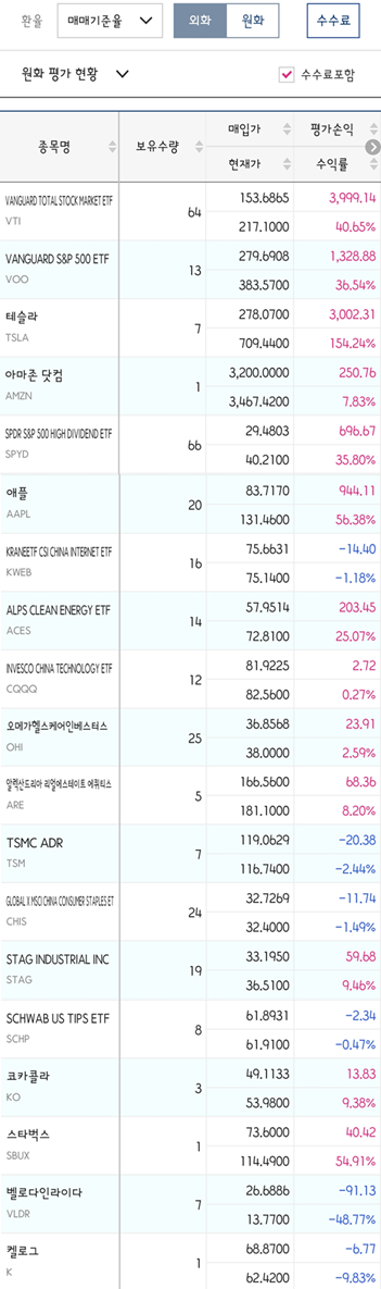 21년 5월1일 기준 미국 주식 계좌 현황_종목별