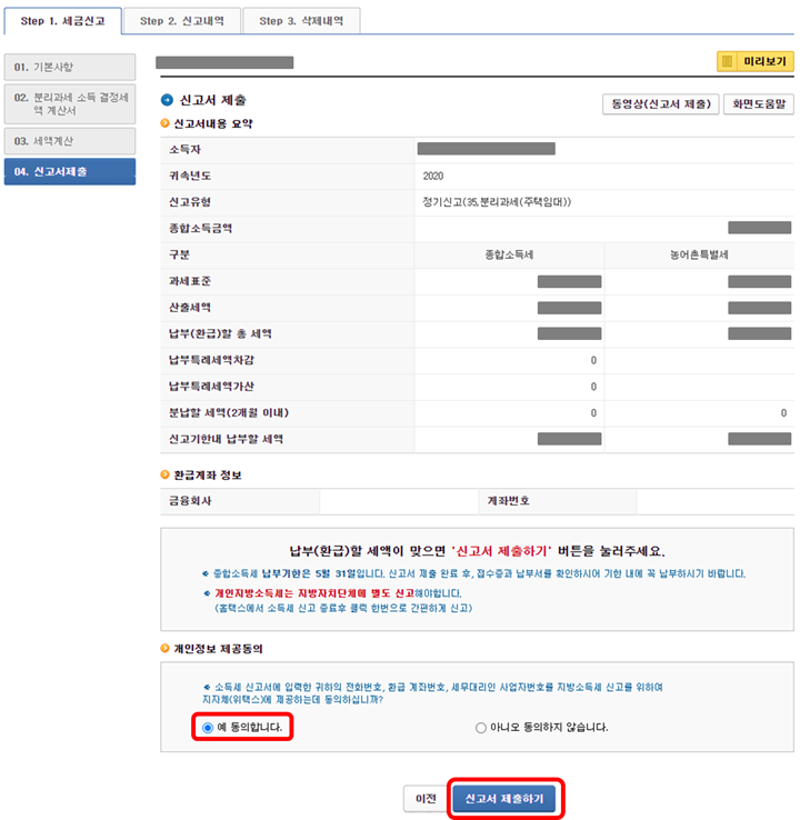 눌러주시고, 신고서 제출하기 눌러주세요.