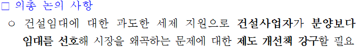 요약하자면 건설임대는 현행유지,